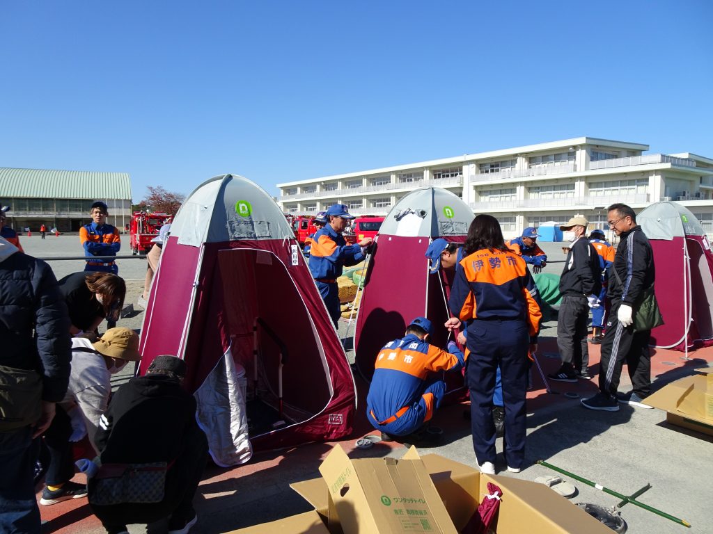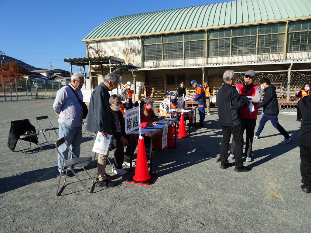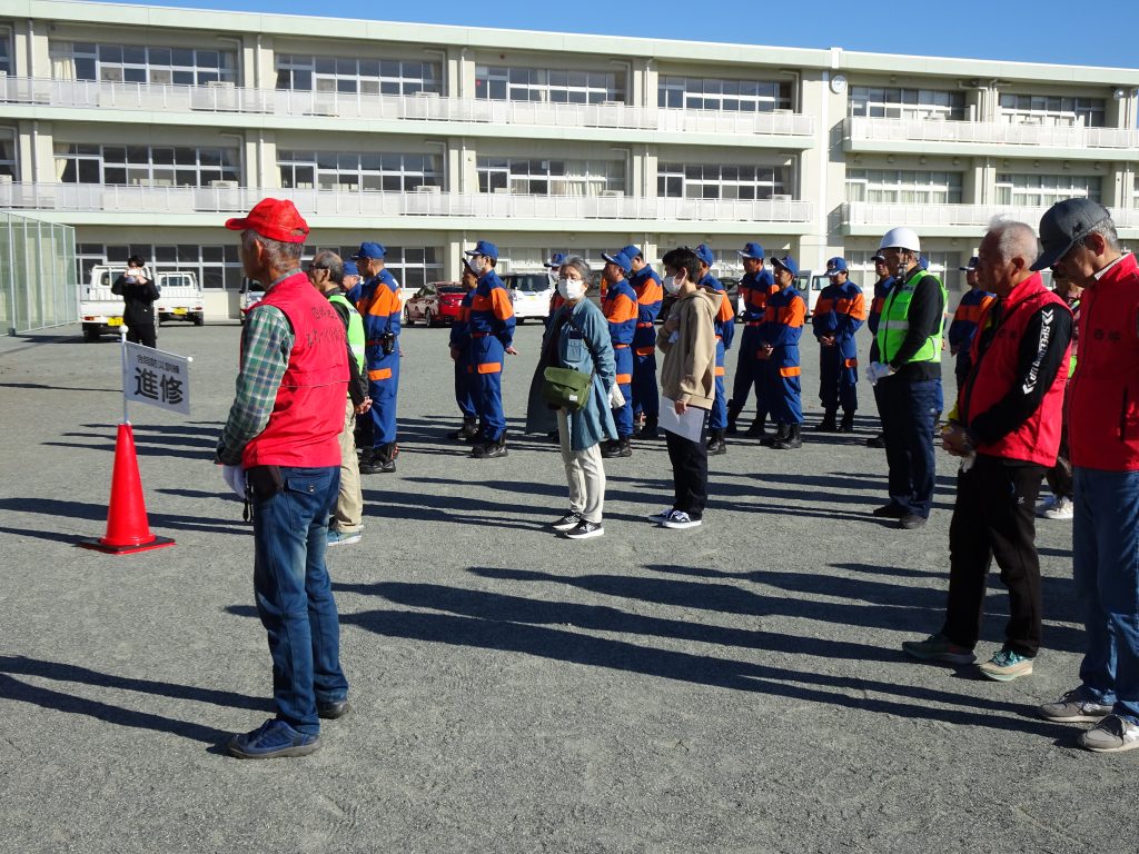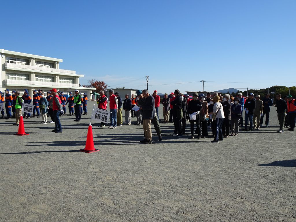 令和7年11月15日(土)に五十鈴中学校グラウンド及び体育館にて、五十鈴中学校区合同防災訓練が行われ、修道まちづくり会からも34名が参加しました。