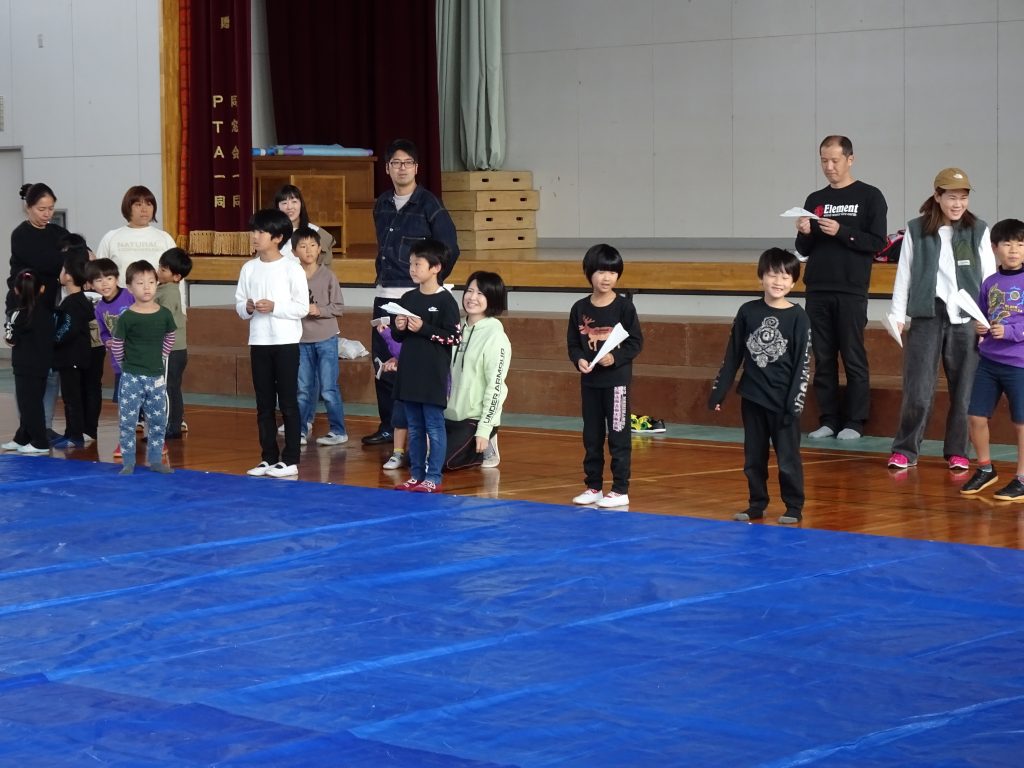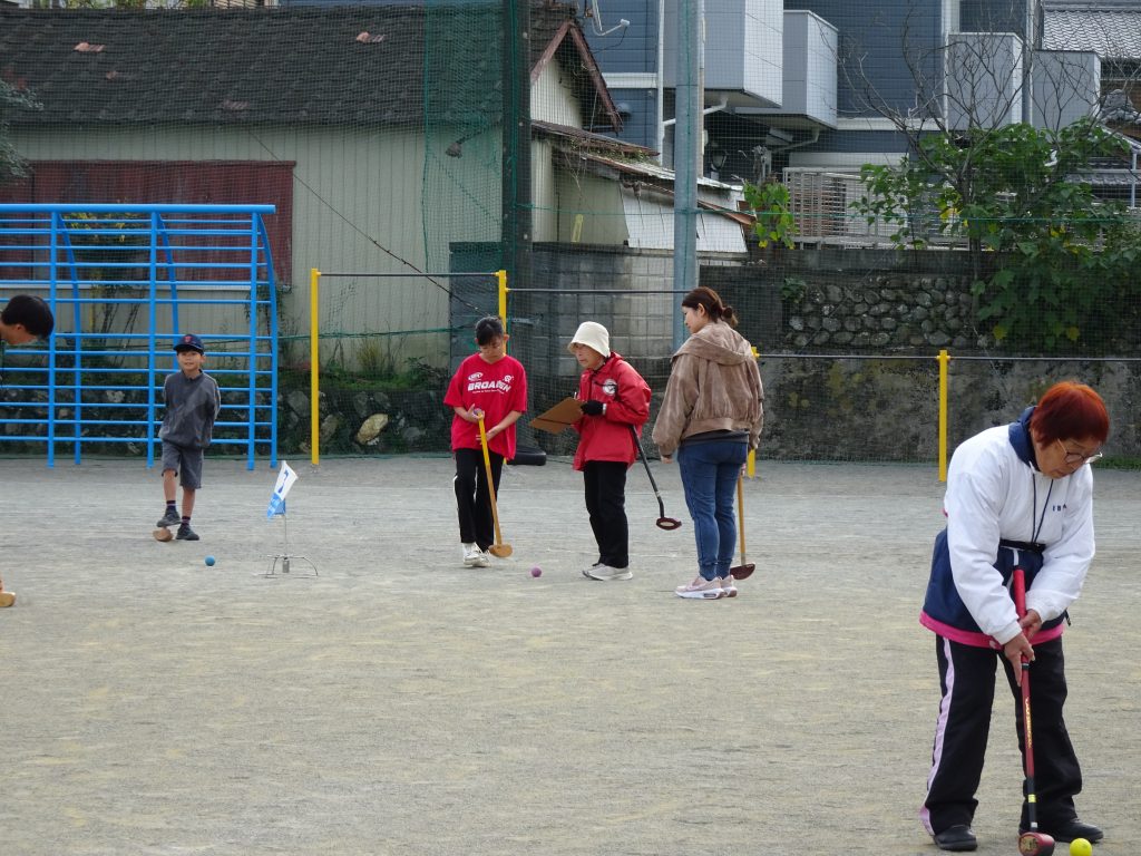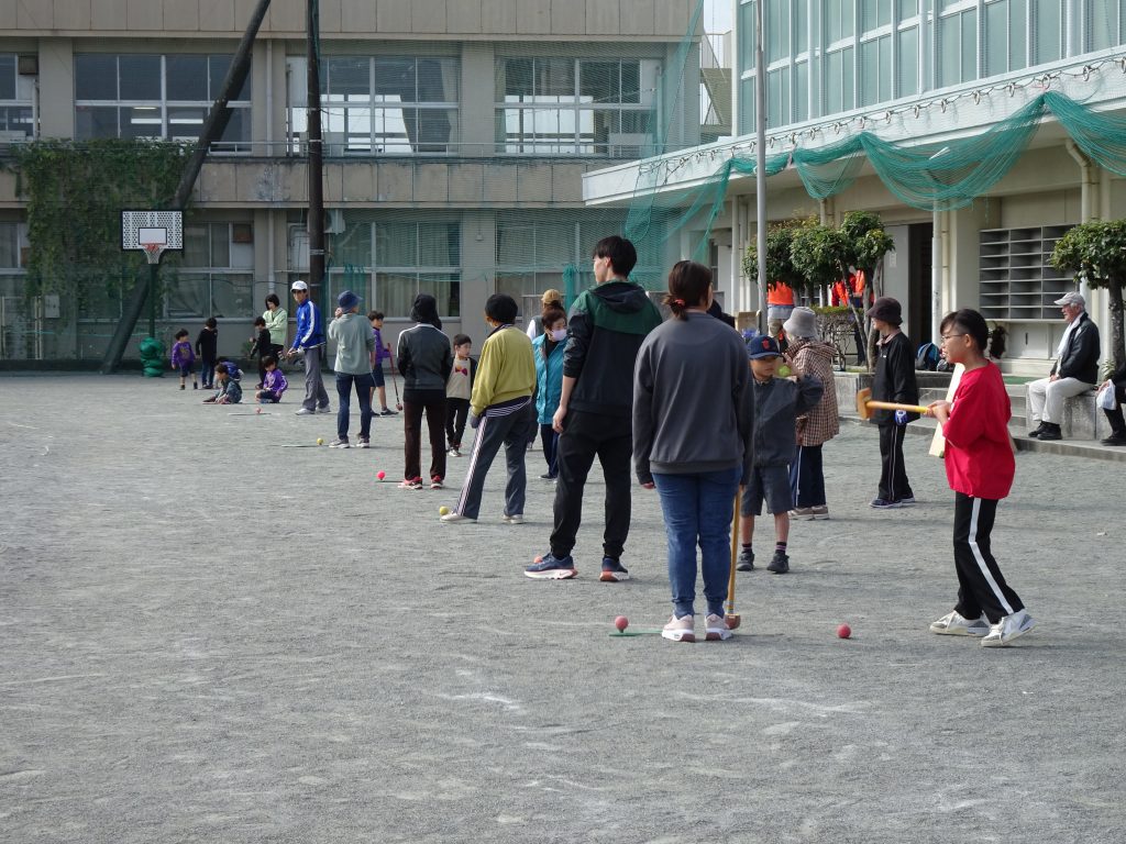 令和7年11月8日(土)に修道小学校グラウンド及び体育館にて、スポーツフェスティバルを行いました。2年ぶりにグラウンドゴルフを復活させ、体育館では小運動会的な要素を取り入れ、スリッパ競争、ターゲットゲーム、菓子取り競争、紅白玉入れ、紙ひこう機飛ばしを行い、最後には参加者全員でグランドゴルフホールインワンゲームを行いました。