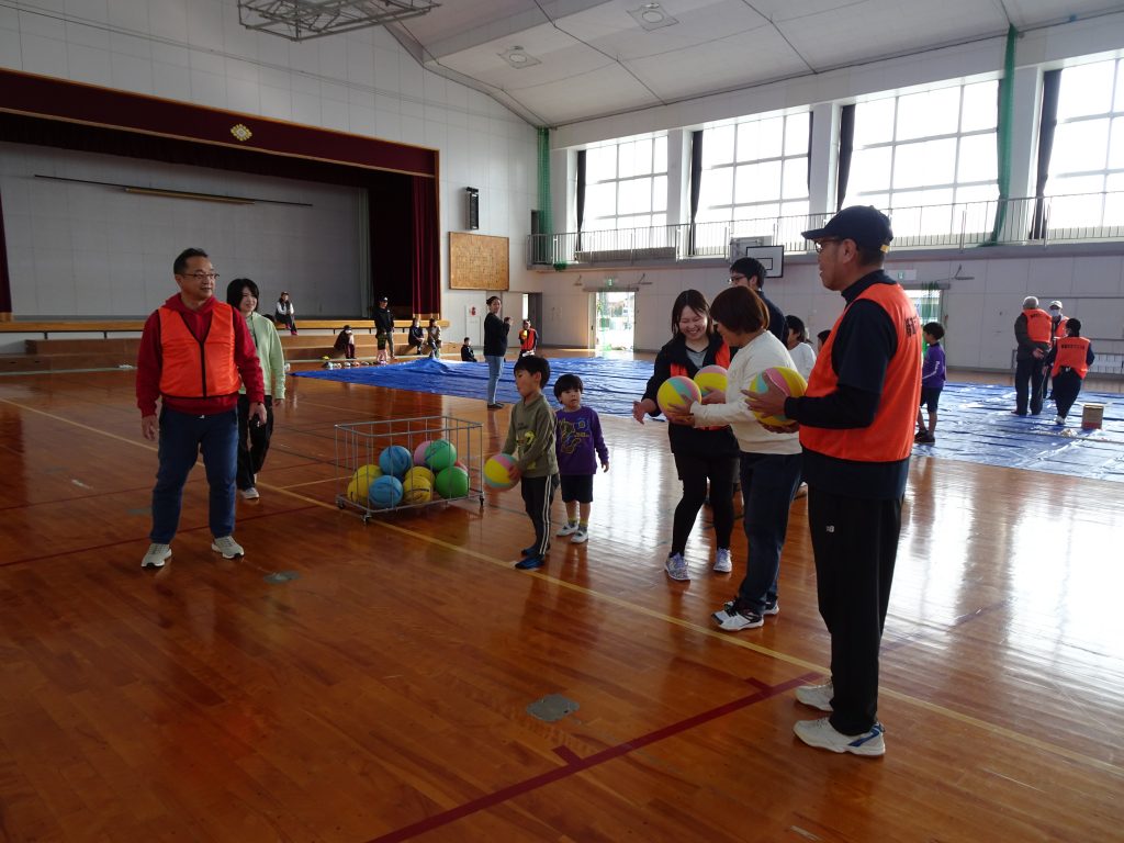 参加者はグランドゴルフ20名 ;ミニ運動会:子供19名、大人18名